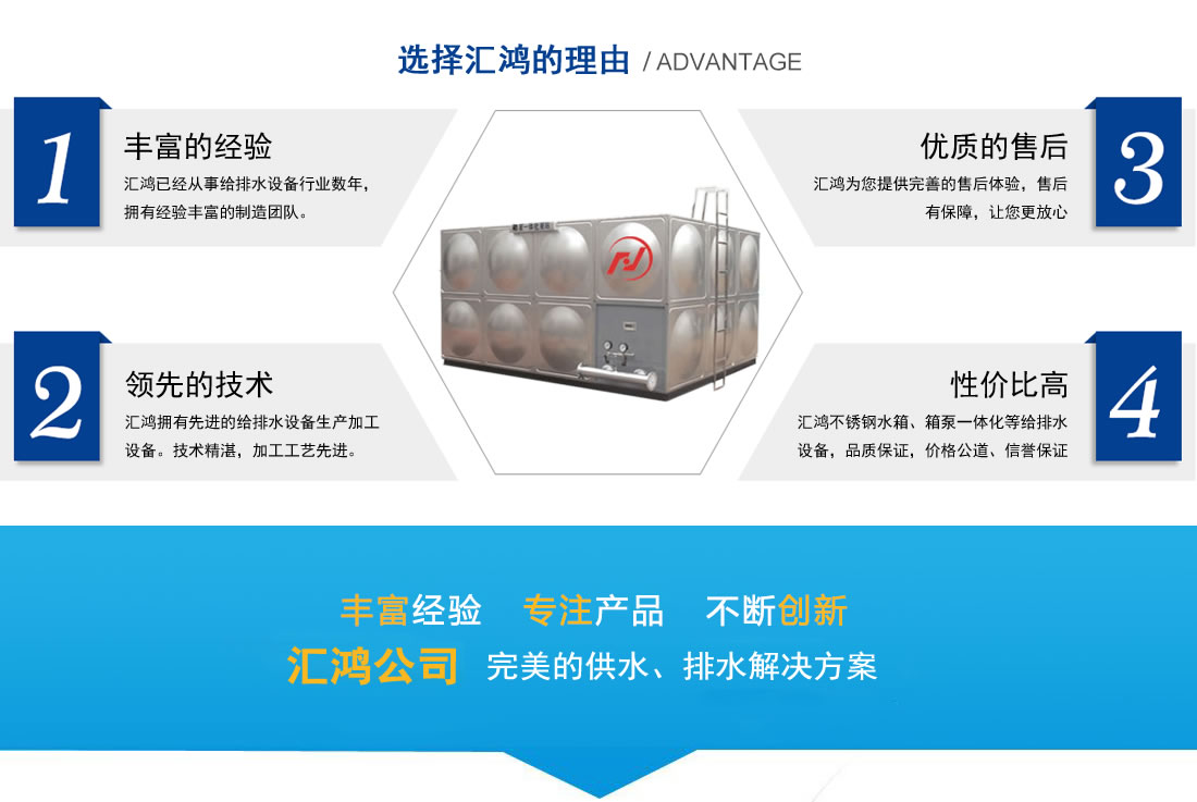 鹽城匯鴻供水設(shè)備有限公司是一家專業(yè)從事供排水設(shè)備系統(tǒng)生產(chǎn)、銷售與工程安裝于一體的專業(yè)企業(yè)。本公司主要生產(chǎn)、銷售、安裝各類不銹鋼水箱、箱泵一體化、不銹鋼保溫水箱、組合式水箱、聚氨酯保溫模塊、圓柱形水箱、消防水箱、玻璃鋼水箱、玻璃鋼化糞池等十多個(gè)系列數(shù)百種規(guī)格,產(chǎn)品廣泛應(yīng)用于建筑、環(huán)保、化工、食品、消防等各個(gè)領(lǐng)域。具有優(yōu)質(zhì)高效、節(jié)能環(huán)保、安全可靠、實(shí)用方便等優(yōu)點(diǎn),是二十一世紀(jì)商用和家用生活的首選產(chǎn)品。本公司生產(chǎn)設(shè)備先進(jìn),技術(shù)精湛,各種產(chǎn)品的加工工藝,技術(shù)性能和衛(wèi)生指標(biāo)均符合國(guó)家標(biāo)準(zhǔn),并可根據(jù)用戶提供的技術(shù)參數(shù)和要求設(shè)計(jì)制造現(xiàn)場(chǎng)加工……【更多詳情】 | |